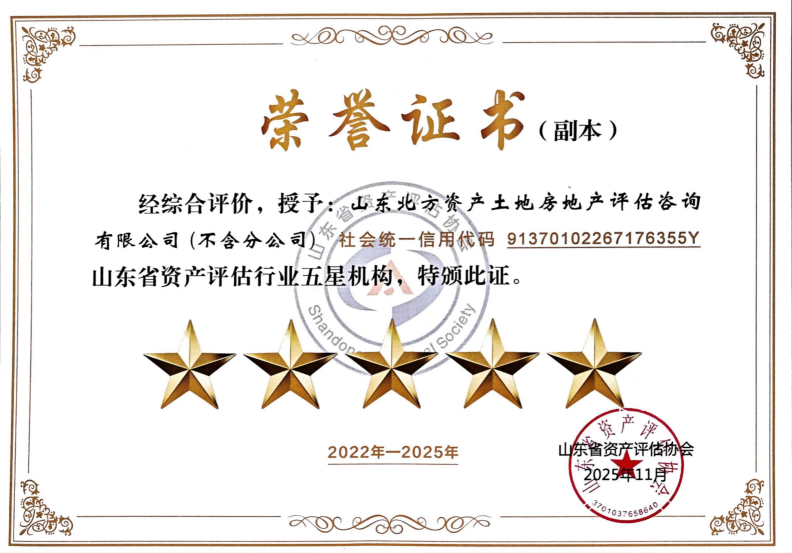 为加强我省资产评估机构质量建设,规范行业执业行为,提升行业整体专业水平与公信力,推动资产评估行业高质量发展,根据《山东省资产评估机构综合评价评级管理暂行办法》(鲁评协〔2025〕41号)规定,山东省资产评估协会组织开展了2025年度全省资产评估机构综合评价评级工作。最终我公司被省评估协会综合评价评级为5星机构。